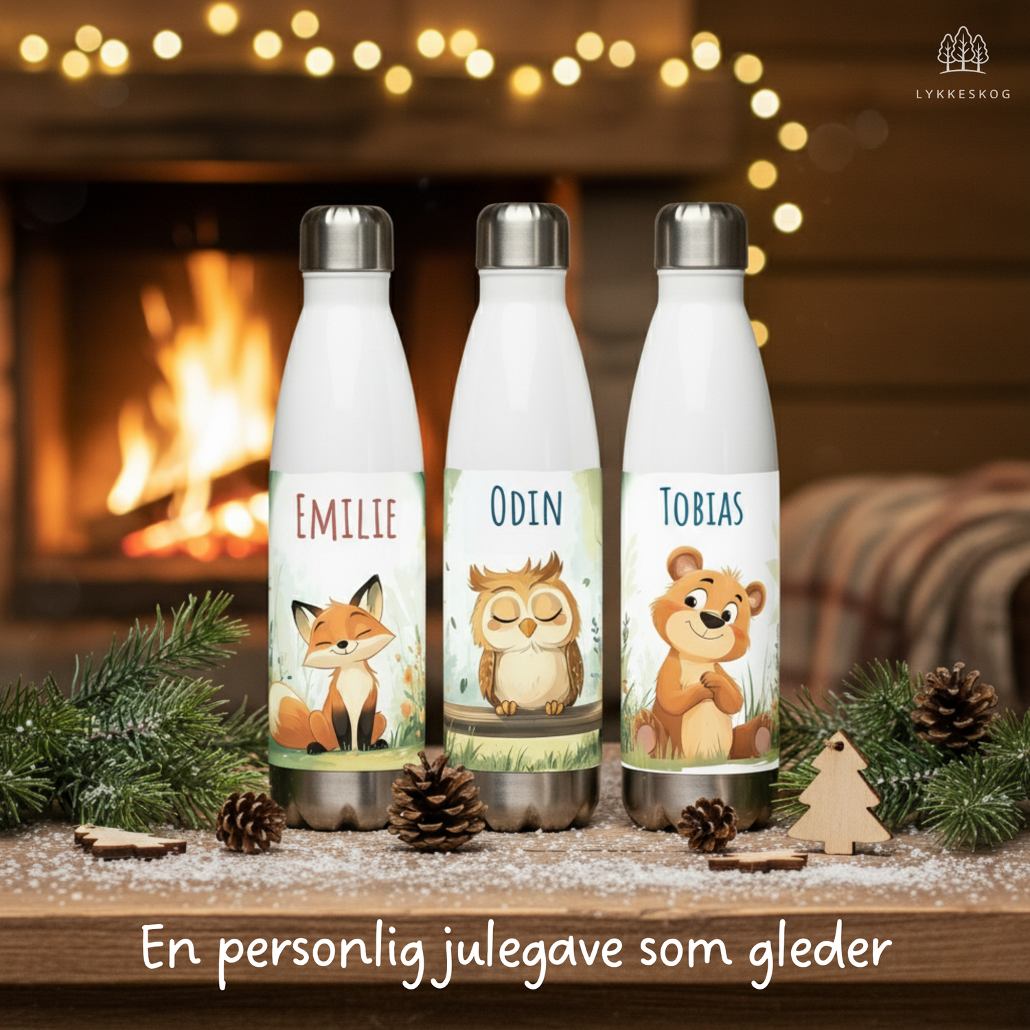 - En gave som varer: Perfekt til skole, barnehage, jobb eller tursekk. En drikkeflaske fra Lykkeskog er både en praktisk og hjertevarm gave, som blir brukt igjen og igjen.
