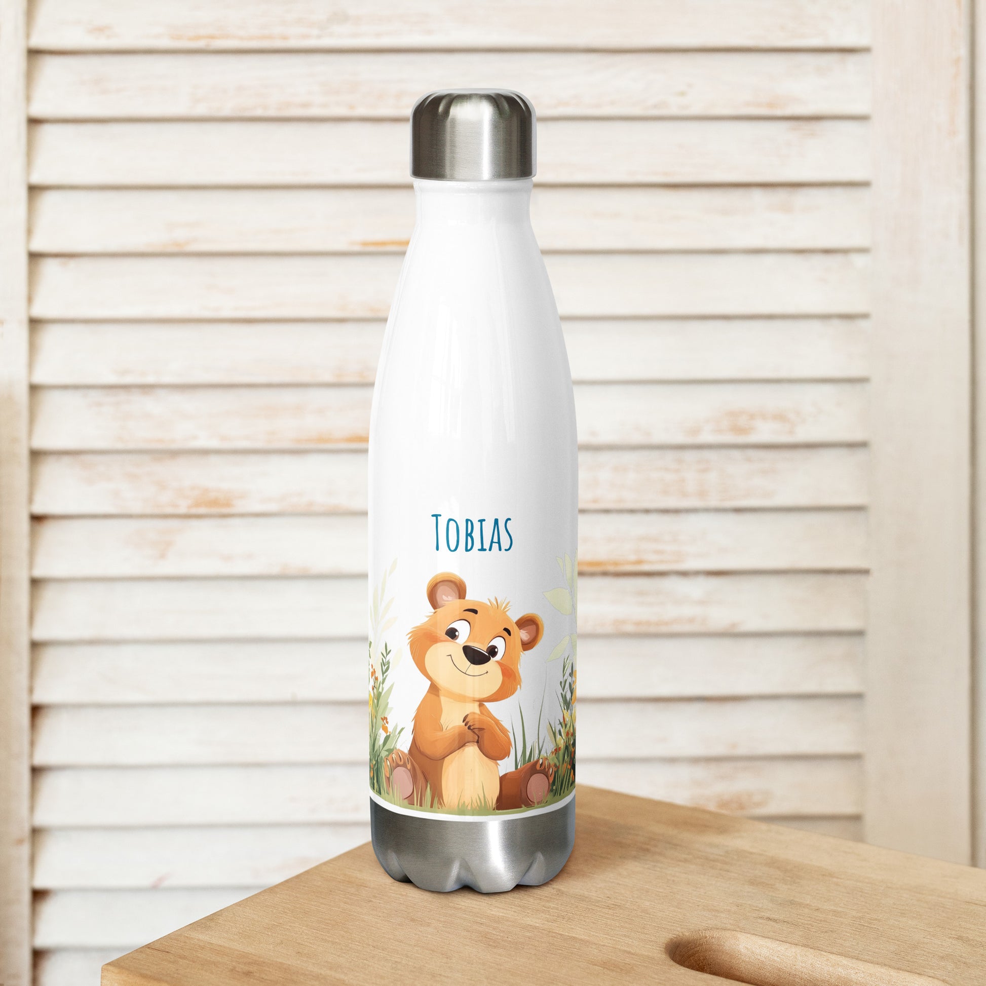 Gjør drikkepausen ekstra koselig med denne søte flasken med bjørnemotiv! Perfekt til saft, vann eller kakao på tur.