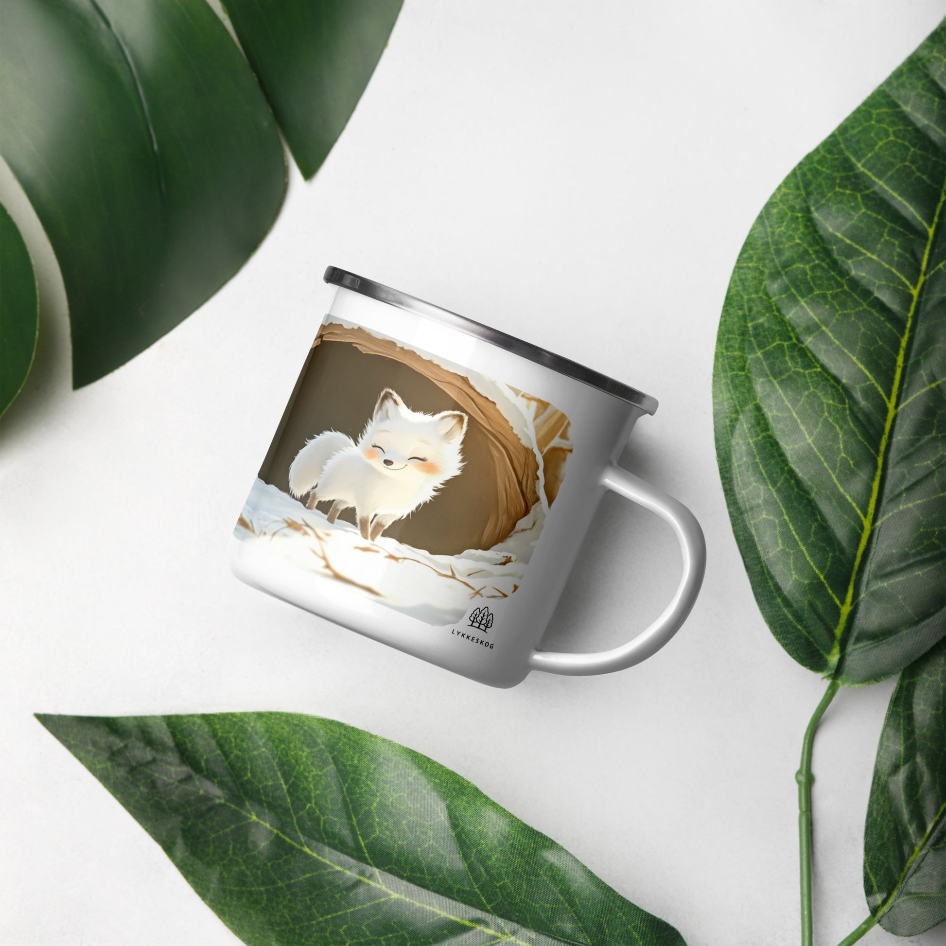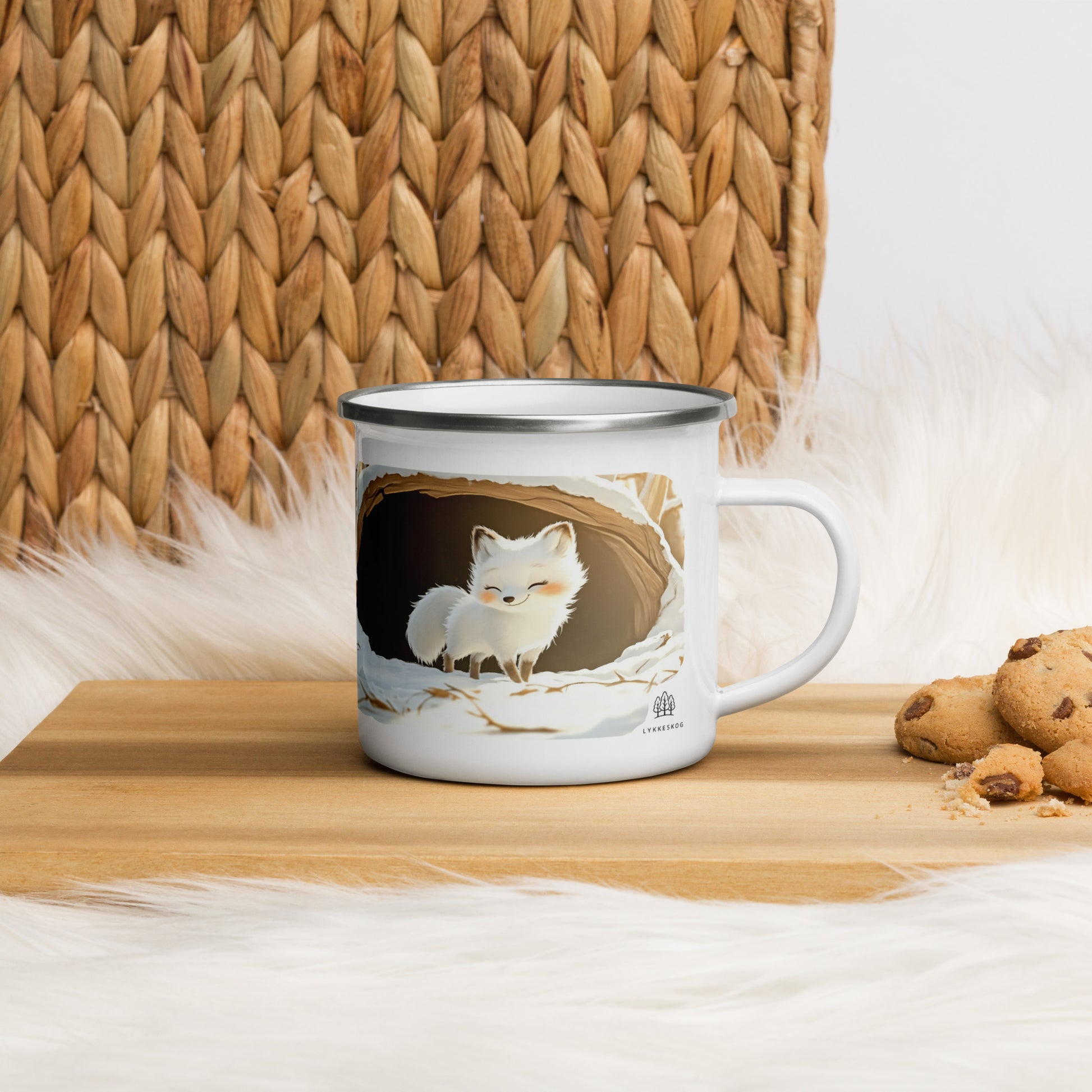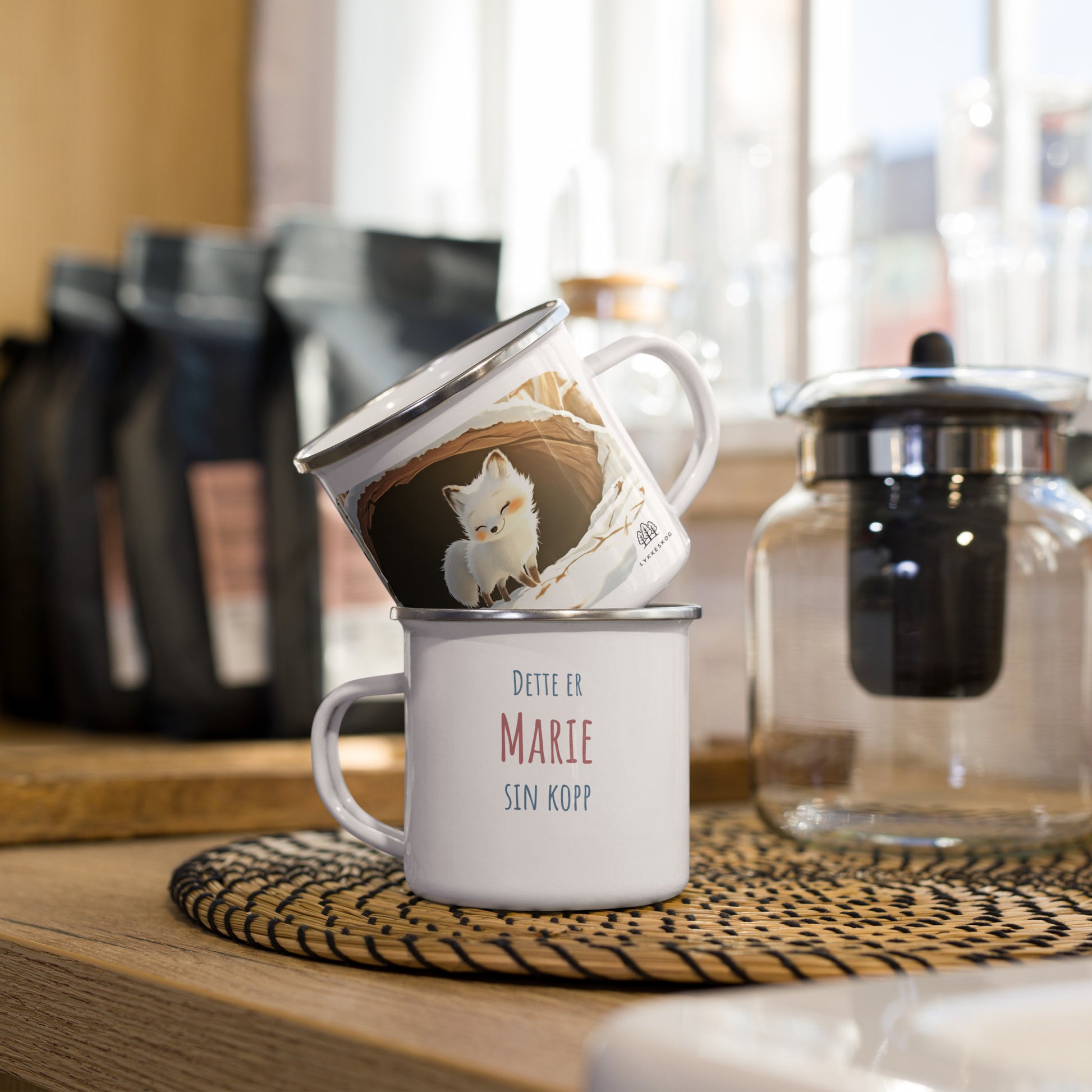 Denne sjarmerende koppen viser en liten rev som kikker ut fra hulen sin, klar for en ny dag i snødekket skog. Motivet sprer ro, varme og et snev av eventyr. Den har en søt rev 🦊 på den ene siden, på den andre barnets eget navn. En kopp som gjør kalde dager litt lunere og minner deg på å nyte de små øyeblikkene.