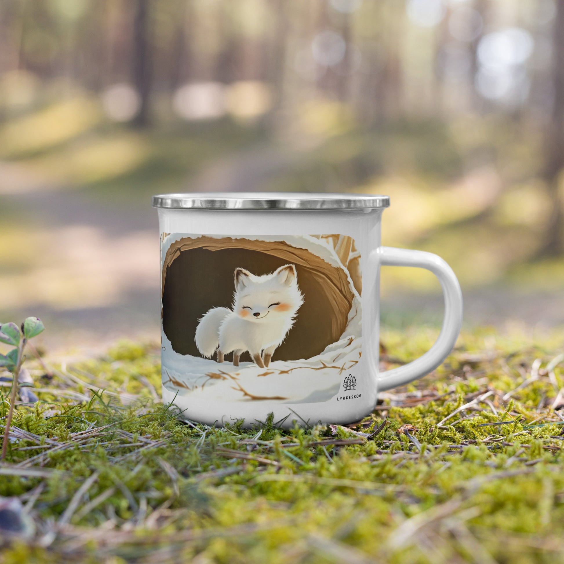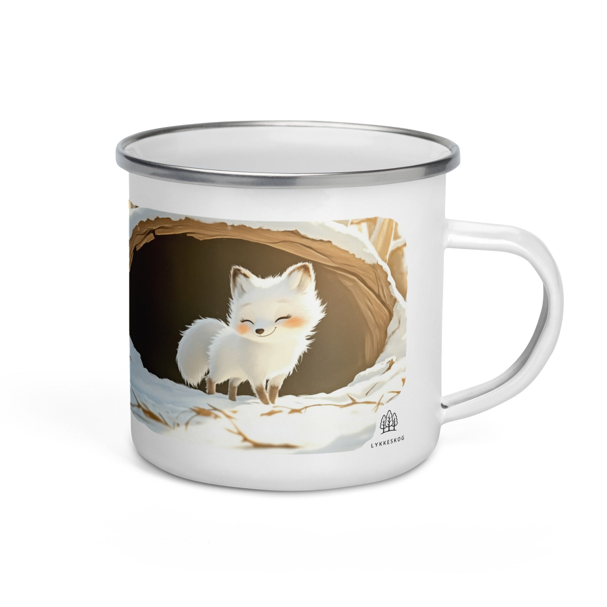 Denne koppen er laget for eventyr, både ute og inne. Emalje er et lett og slitesterkt materiale som gir koppen et nostalgisk preg, men den liker seg best med litt varsom håndtering. For å ta godt vare på både kopp og motiv anbefaler vi kun håndvask, og koppen tåler ikke mikrobølgeovn.