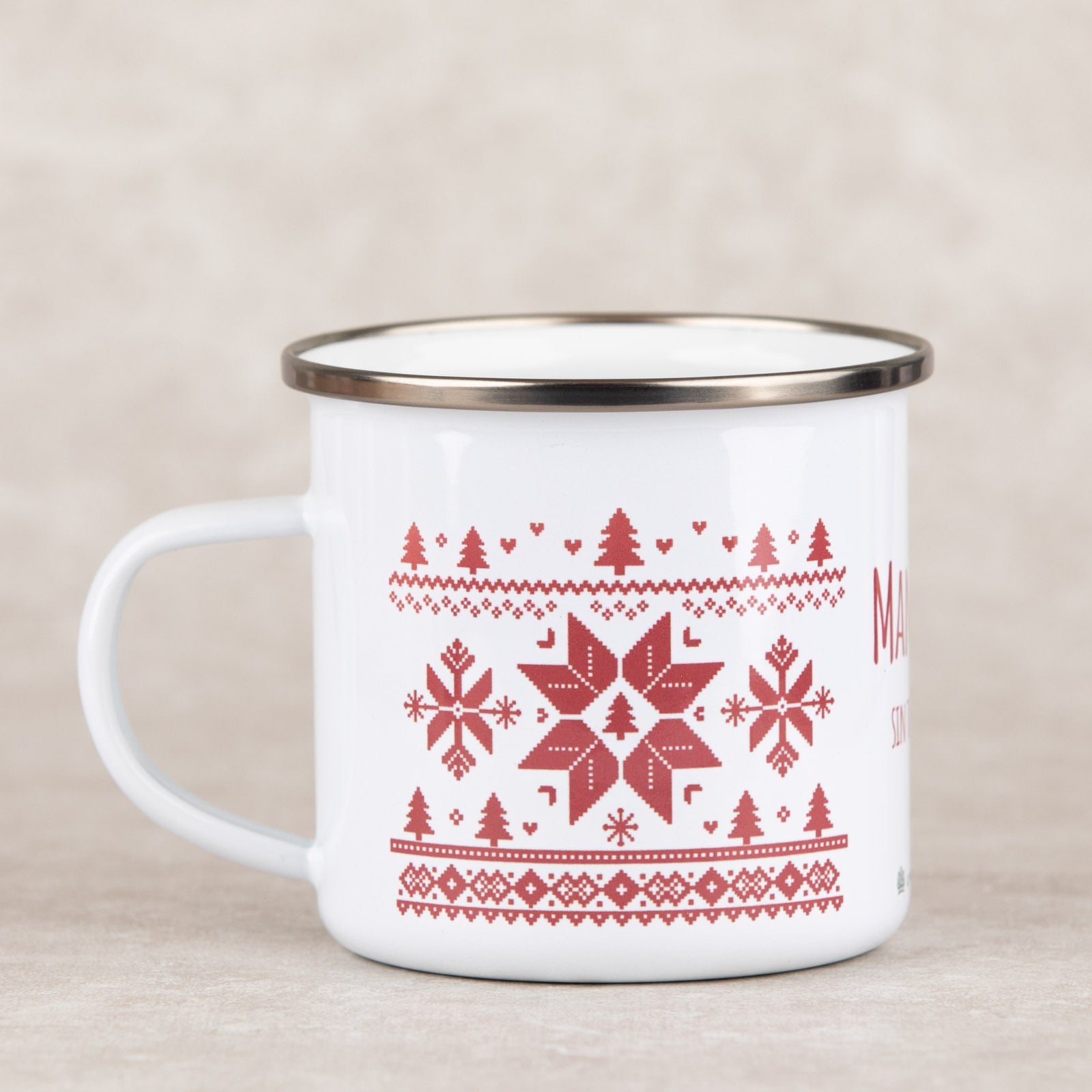 Emalje lages ved at glassmasse smeltes på metall ved svært høy temperatur. Dette gir en robust kopp, men også et levende og håndverkspreget uttrykk. Derfor kan det forekomme små prikker, ujevnheter eller merker i overflaten, særlig langs kanten. Dette er helt normalt for emaljekopper og påvirker verken funksjon, holdbarhet eller bruk.