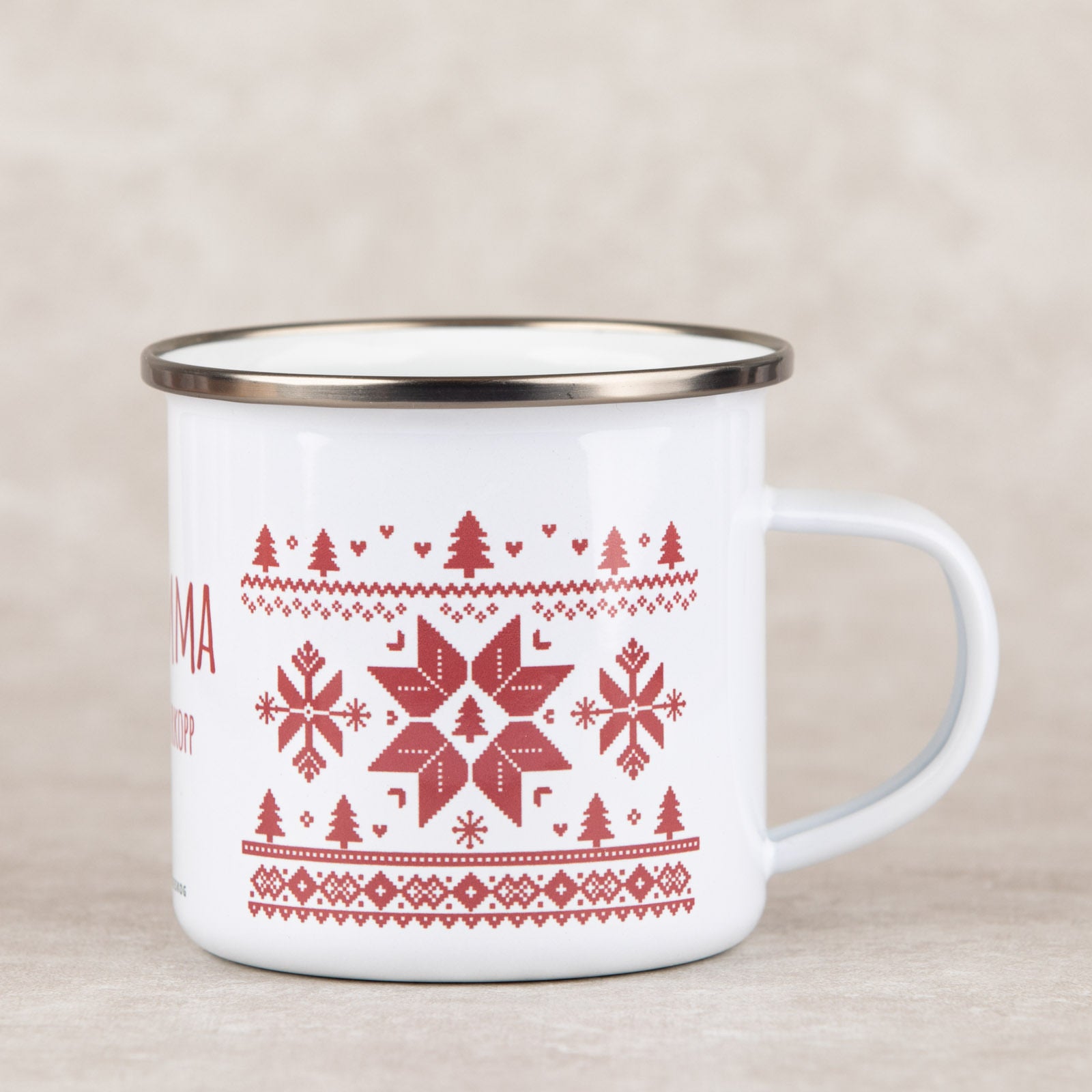 Vi ser på disse naturlige variasjonene som en del av sjarmen, og på trykkemetoden som en garanti for kvalitet. Hver kopp blir litt unik. Ønsker du et helt perfekt, industrielt uttrykk, kan keramikk være et bedre valg. Ønsker du derimot en kopp med karakter, laget for bruk, tur og minner, er emalje et naturlig valg.