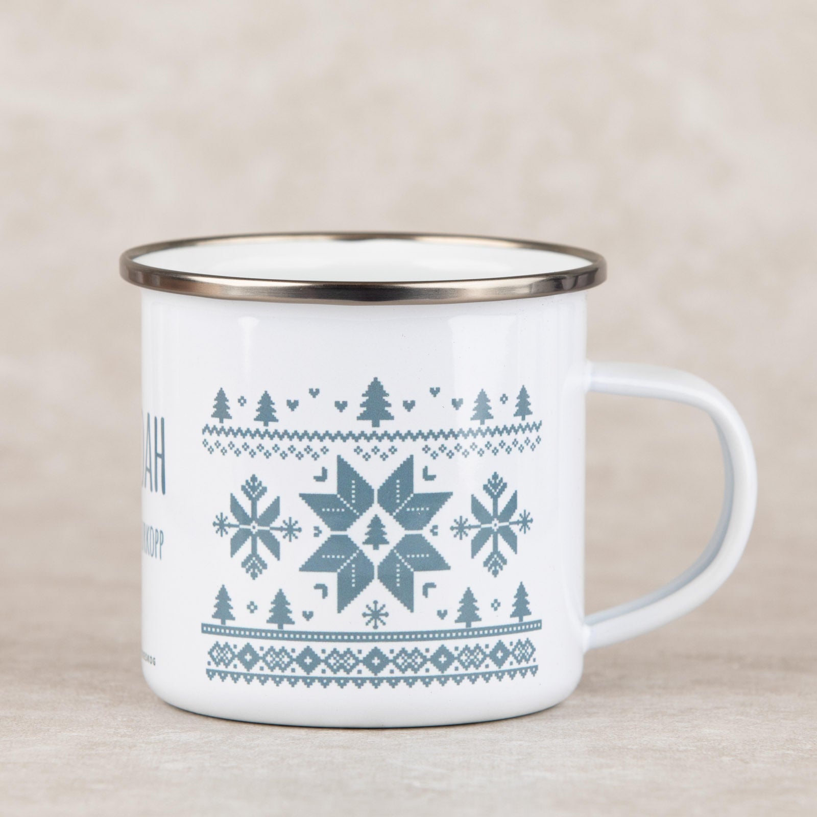 Vi ser på disse naturlige variasjonene som en del av sjarmen, og på trykkemetoden som en garanti for kvalitet. Hver kopp blir litt unik. Ønsker du et helt perfekt, industrielt uttrykk, kan keramikk være et bedre valg. Ønsker du derimot en kopp med karakter, laget for bruk, tur og minner, er emalje et naturlig valg.