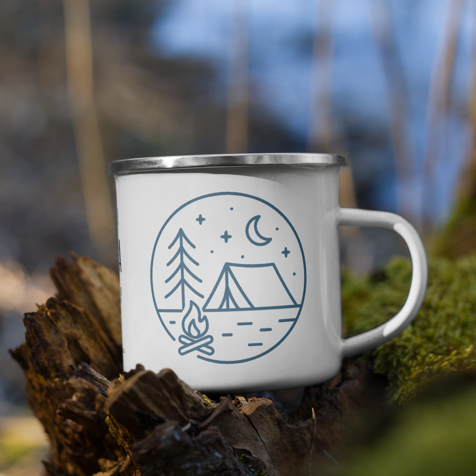 La eventyret begynne! Med varme hender rundt en kopp og gnistrende ild i mørket. Denne emaljekoppen med stilrent strekmotiv av telt, bål og måneskinn er perfekt for de som trives best ute. Enten det er morgenkaffe ved teltduken eller kveldsro under stjernene, bringer koppen et lite snev av villmark til både tur og hverdag. En stemningsfull gave til friluftsentusiaster og eventyrere i alle aldre.