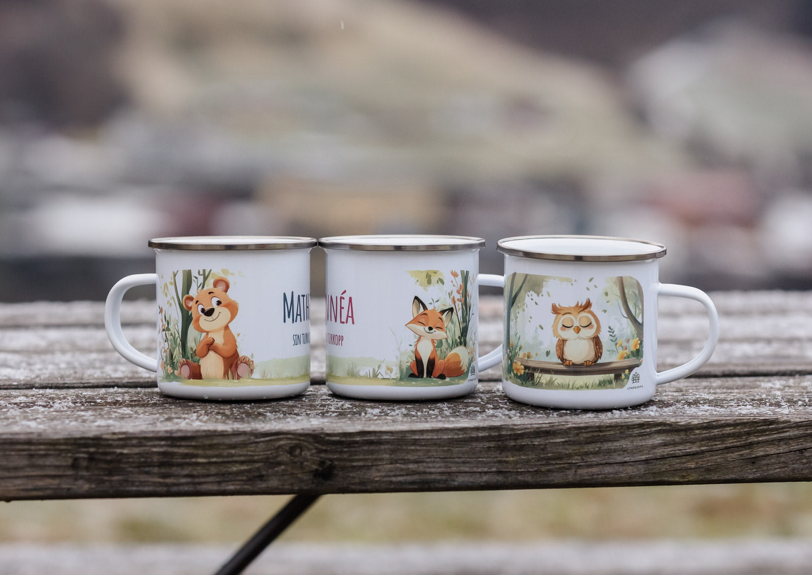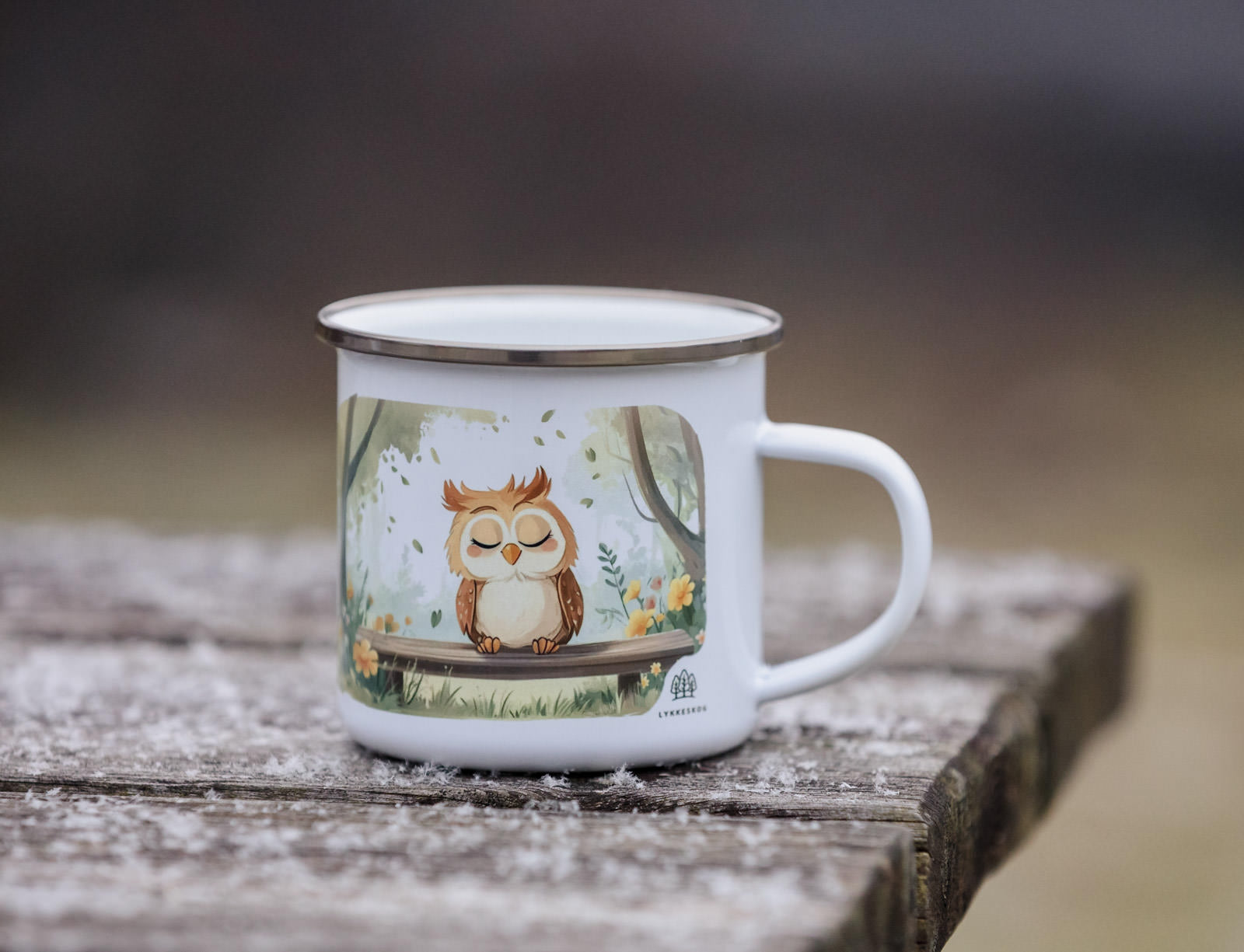 Denne emaljekoppen prydes av en rolig ugle som sprer både hygge og eventyrstemning, med barnets eget navn stolt plassert på den andre siden. En sjarmerende kopp som gjør hver tur og hver pause litt hyggeligere.