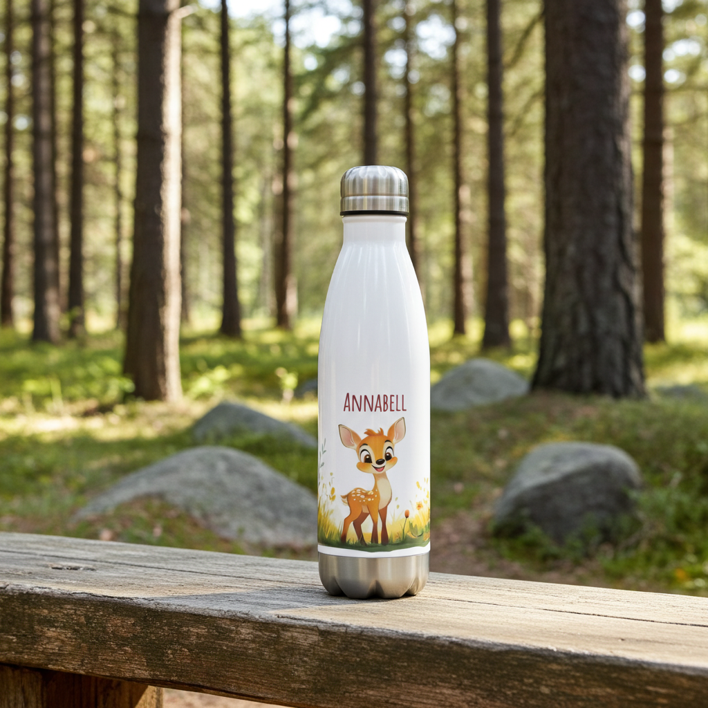 Gjør drikkepausen ekstra koselig med denne søte flasken med et rådyr! Perfekt til saft, vann eller kakao på tur og i hverdagen.