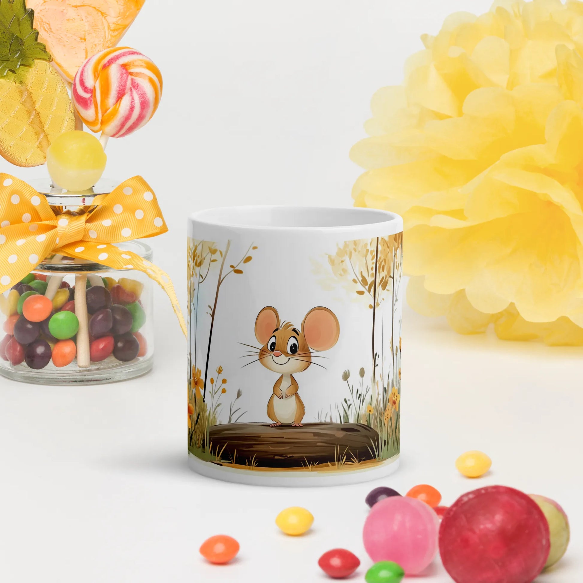 Med store ører og et enda større smil står denne nysgjerrige musa midt i blomsterengen, klar for nye eventyr. En herlig kopp som sprer glede uansett om du drikker morgenkaffen, ettermiddagsteen eller kveldskakaoen. Perfekt for små og store som elsker natur, sommer og søte detaljer.